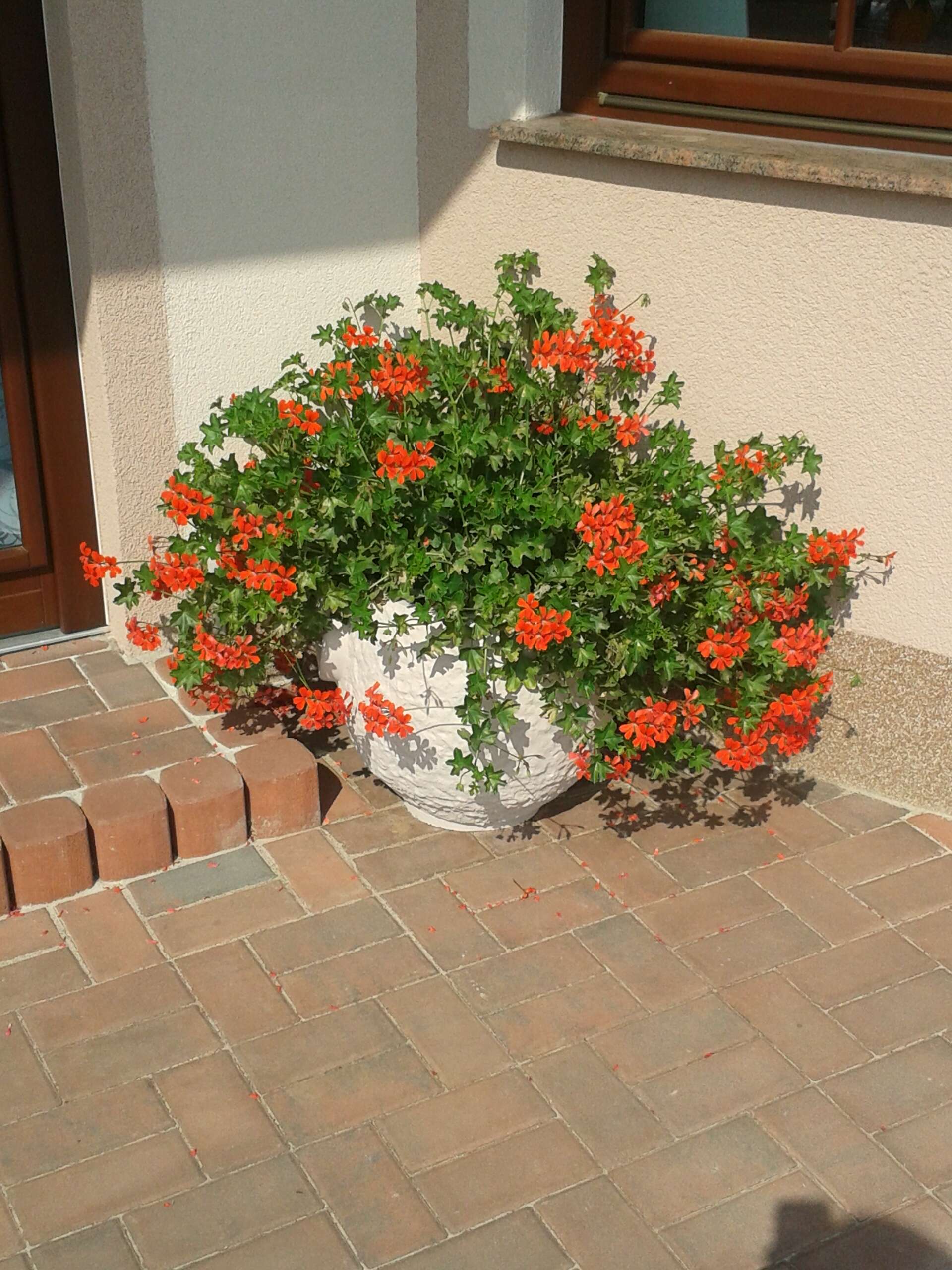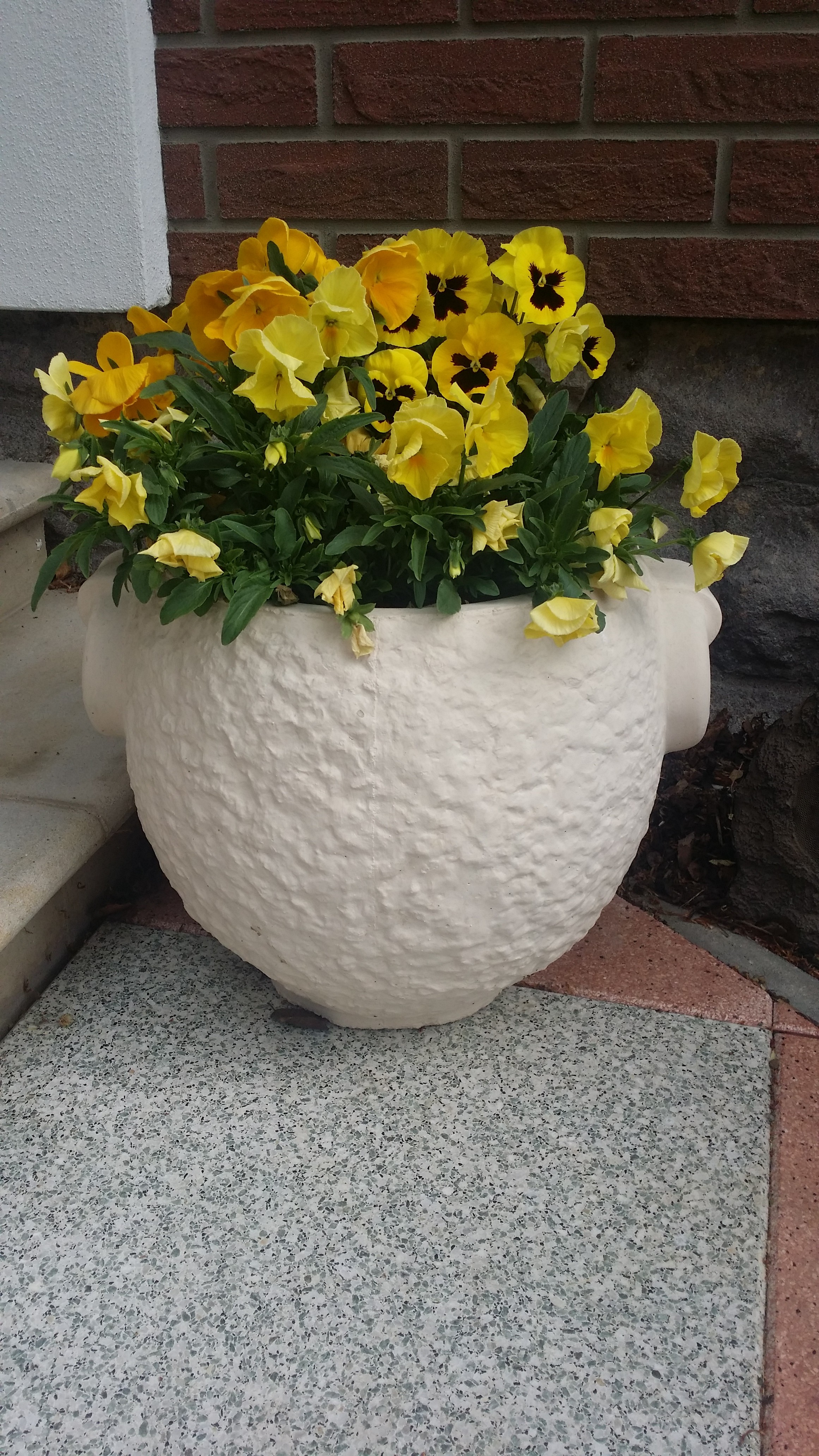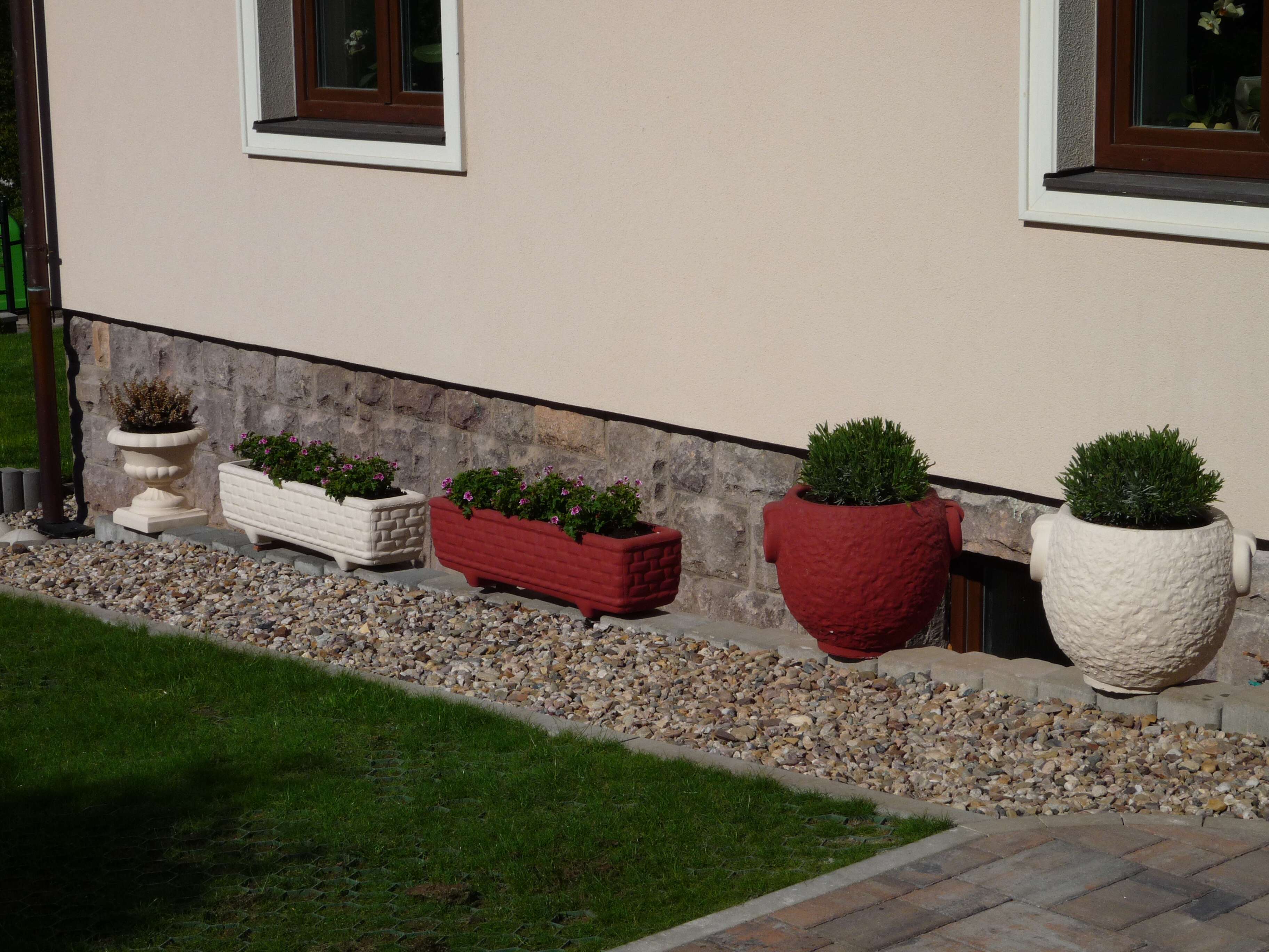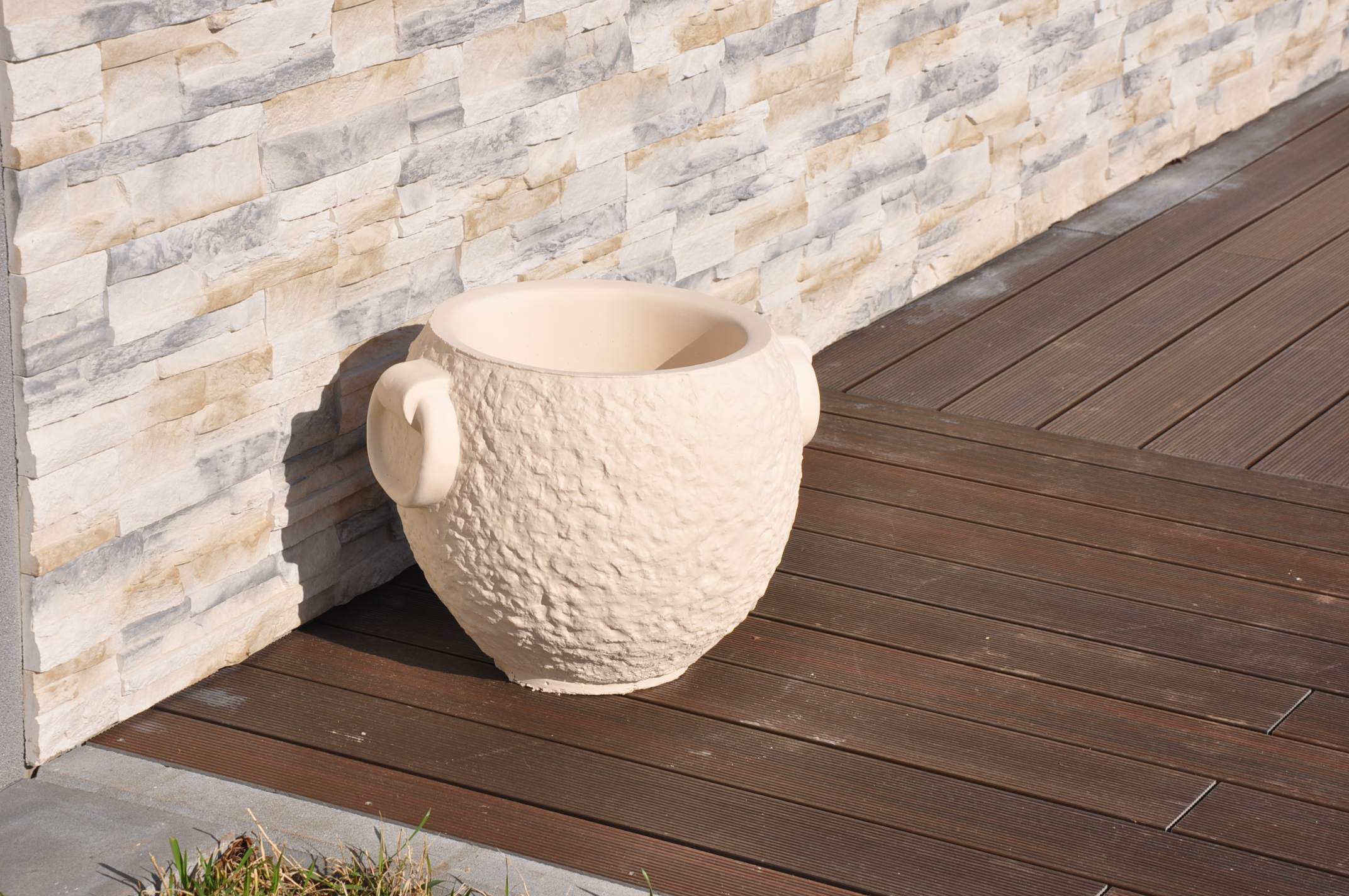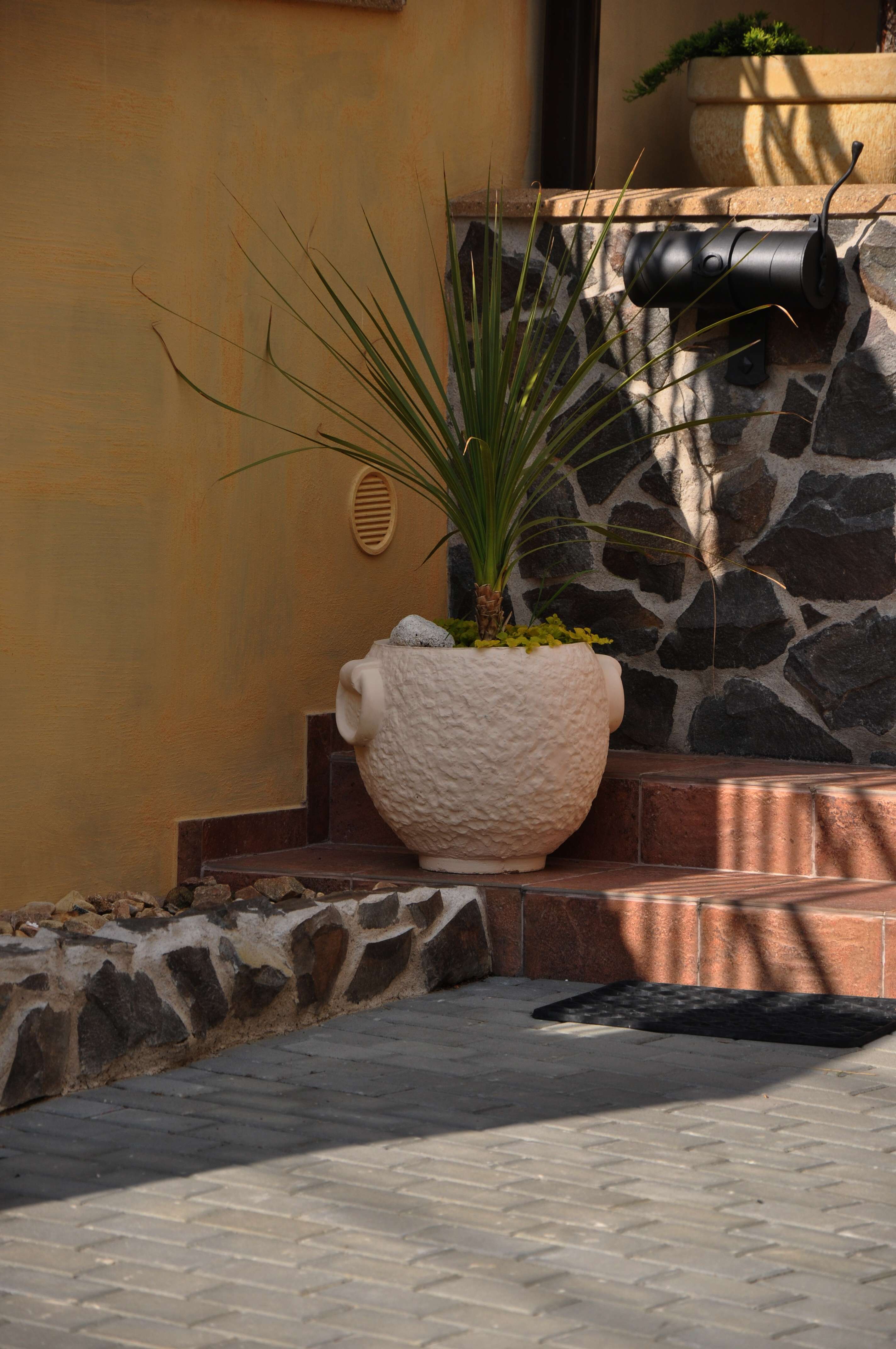 okrasný kulatý květináč natřený fasádní barvou